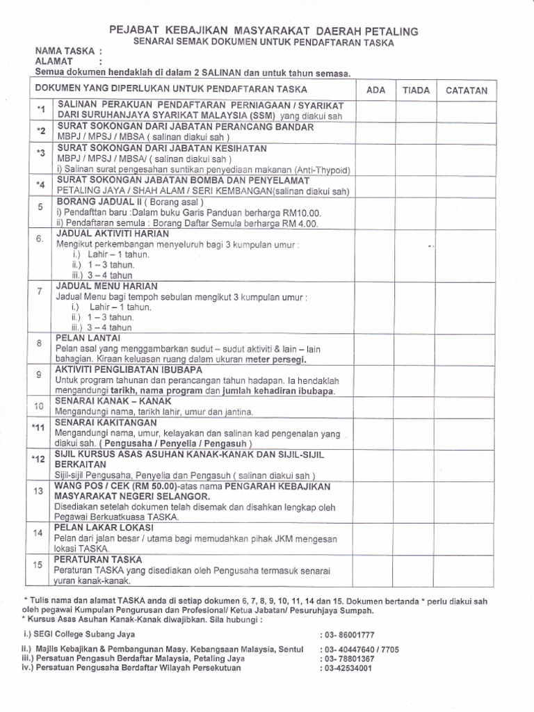 Borang permohonan contoh borang pendaftaran taska. Terima tolak borang pendaftaran taska permata kemas sungai soi kuantan jabatan kemajuan masyarak. Perujuk sekiranya diisi oleh perujuk. Proses pendaftaran pengusaha mengemukankan borang permohonan pendaftaran taska dan dokumen berkaitan kepada pkmd j b. Sila klik pada ikon berikut untuk muat turun borang.