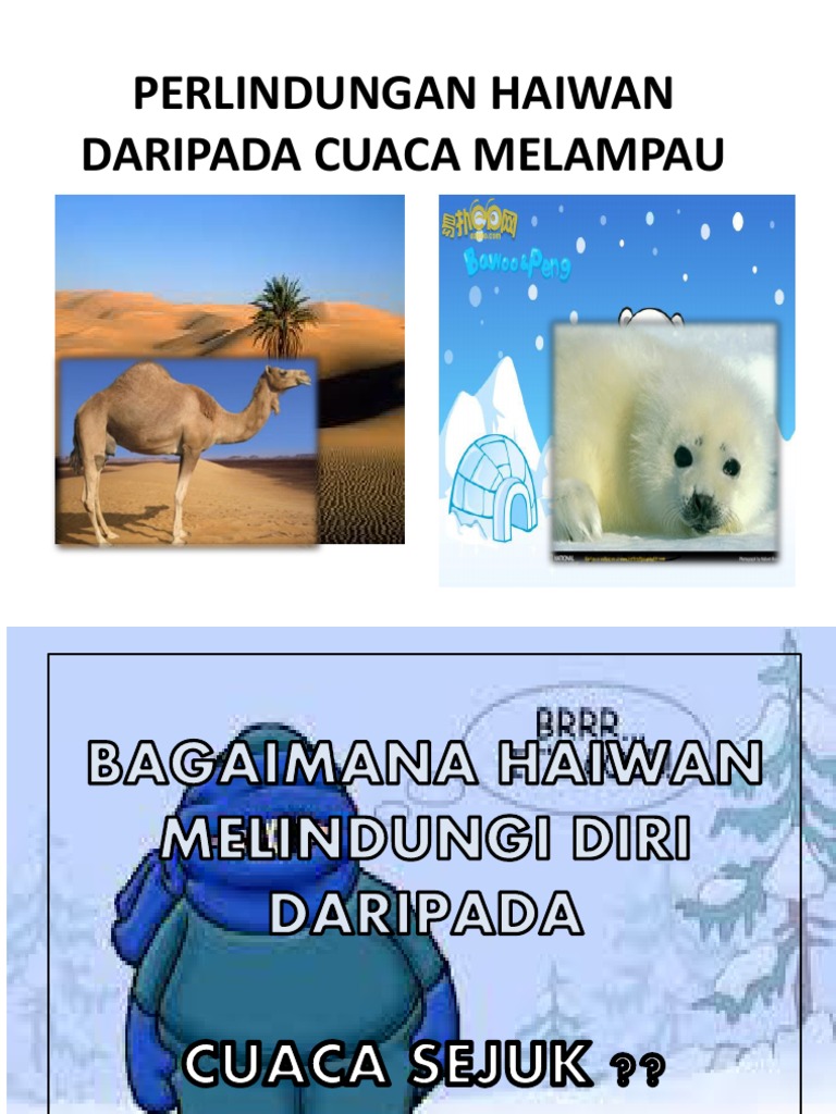 Sesetengah habitat mempunyai cuaca yang melampau seperti terlalu panas atau terlalu sejuk. Haiwan melindungi diri daripada cuaca melampau quiz quiziz malaysia adalah sebuah negara yang cukup kaya dengan khazanah alam kerana terdapat pelbagai jenis spesies flora dan fauna yang sentiasa melata dalam habitat semula jadi mereka namun apa yang menyedihkan adalah kerakusan manusia meneroka dan mengejar pembangunan telah mengakibatkan haiwan haiwan ini berada dalam keadaan yang terancam. Sesetengah haiwan hidup di habitat yang mempunyai cuaca yang melampau sama ada sangat panas atau sangat sejuk. Perlindungan haiwan daripada cuaca melampau 1.