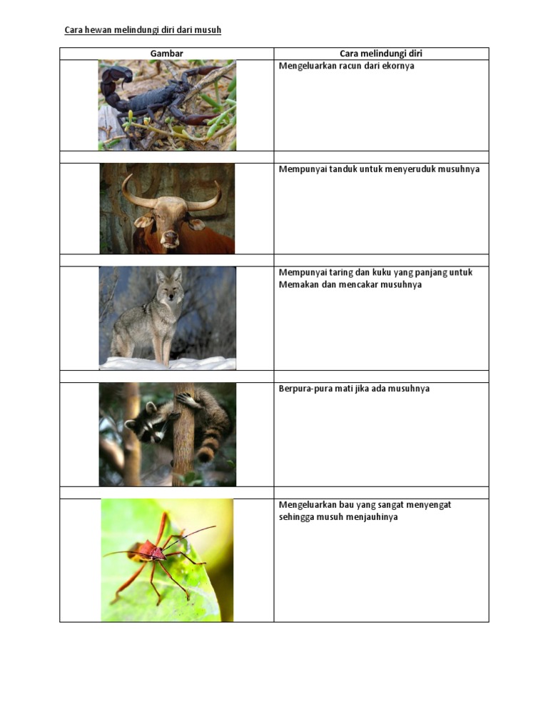 Cara haiwan melindungi diri. Haiwan mempunyai ciri ciri dan kelakuan khas bagi melindungi dirinya daripada dimakan oleh haiwan lain atau diancam oleh manusia. Topik 1 haiwan melindungi diri daripada musuh hasil pembelajaran pada akhir topik ini murid diharapkan menyatakan ciri ciri khas haiwan untuk melindungi diri daripada musuh. Ikan hiu lemon akan segera berpura pura mati dengan cara membalikkan punggungnya. Haiwan perlu dilindungi daripada bahaya seperti dimakan haiwan lain atau diserang oleh musuh.