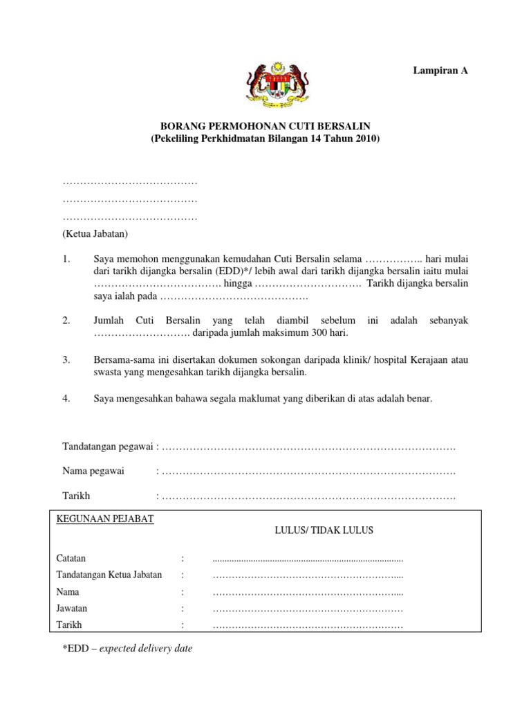 Dikemaskini 27 okt 2017 9 53 pagi. Pp bil 05 2017 pekeliling kemudahan cuti bersalin pegawai perkhidmatan awam. Timbalan menterinya datuk mahfuz omar berkata pihaknya juga akan meminda akta sama bagi membolehkan golongan bapa turut diberi cuti paterniti cuti isteri bersalin selama tiga hari. Majikan disiasat jika pecat pekerja cuti bersalin 90 hari.