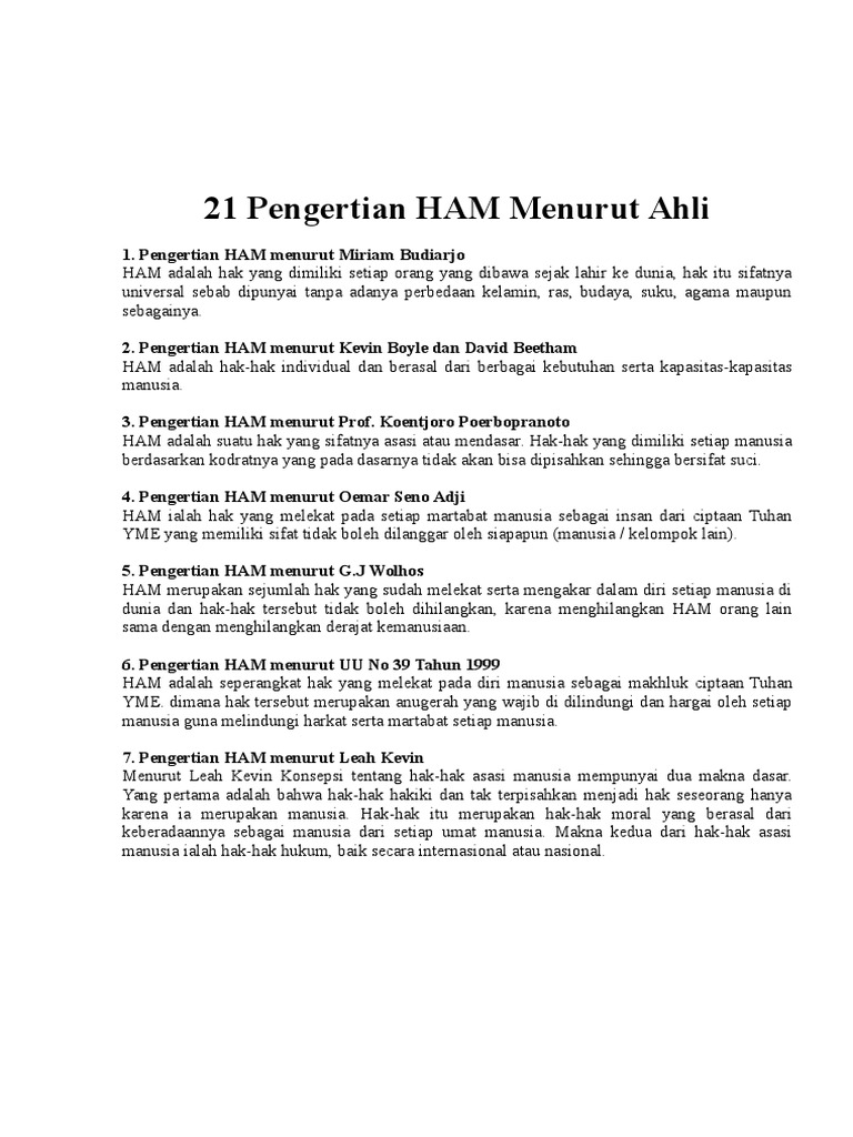 21 pengertian ham menurut para ahli setiap manusia sejak dalam kandungan telah memiliki hak asasi dimana sebagai manusia pasti memiliki sesuatu yang menjadi pokok atau dasar dari setiap diri masing masing individu. Setelah kita mengetahui pengertian hak asasi manusia baik menurut para ahli atau secara umum maka kali ini kita akan membahas tentang macam macam hak asasi manusia ham itu sendiri. Pengertian hak dan kewajiban menurut para ahli manusia menurut kodratnya memiliki hak dan kewajiban atas sesuatu dalam menjalani kehidupan sosialnya dengan manusia lain. Definisi hak asasi manusia menurut para ahli.