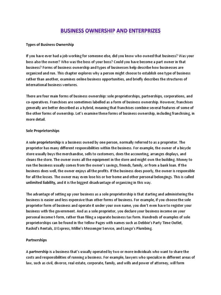 Form Of Business Ownership Example