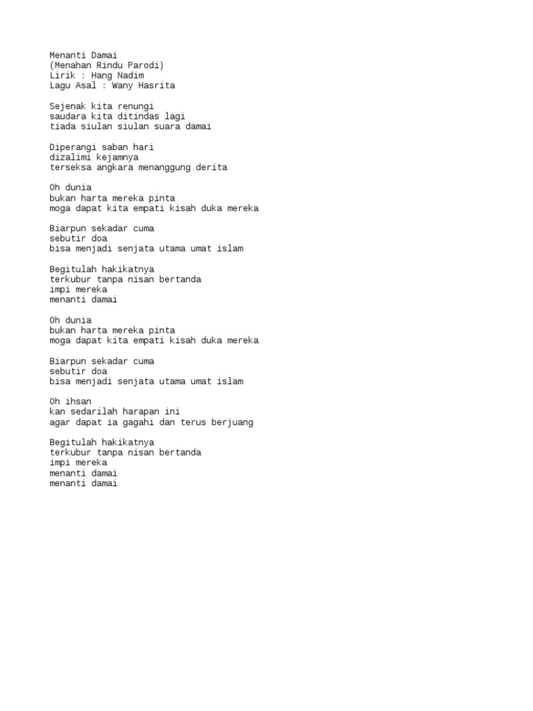 Share to twitter share to facebook. Lagu melayu lagu single solo lirik lagu melayu lirik lagu single solo wany hasrita. In addition this song also managed to draw youtube viewers attention by reached 28 million views and keep on increasing day by day. Lirik lagu menahan rindu wany hasrita.