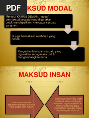 Insan atau manusia dijelaskan sebagai makhluk. Menurut kamus dewan modal bermaksud sesuatu yang digunakan untuk mendapatkan mencapai sesuatu yang lain.