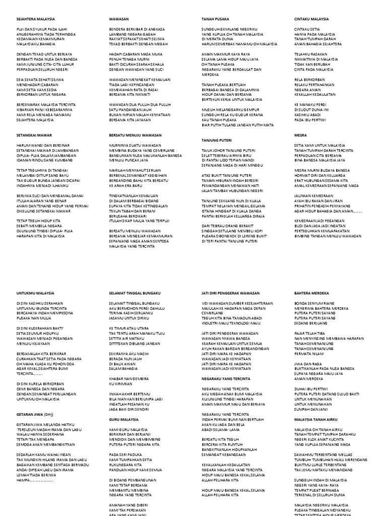 Jalur gemilang pak ngah siso kopratasa jalur gemilang merahmu bara semangat waja putihmu bersih budi pekerti kuning berdaulat payung negara biru perpaduan kami semua puncak dunia telah kau tawan lautan luas telah kau redah membawa semangat jiwa merdeka semarak jaya kami warganya. Jalur gemilang megah kami terasa jalur gemilang kibarkanlah wawasan merah putih biru kuning jalur semangat kami semua berkibarlah berkibarlah berkibarlah. Ketika jalur gemilang dinamakan lagu khas untuknya turut dibuat untuk meraikan dan memperingati bendera malaysia dengan nama jalur gemilang identiti dan kemegahan yang telah dibawa bersama yang bermula melancarkan dirasmikan pada tarikh 9 ogos 2003. Posted by shazmira at 2 38 am no comments.