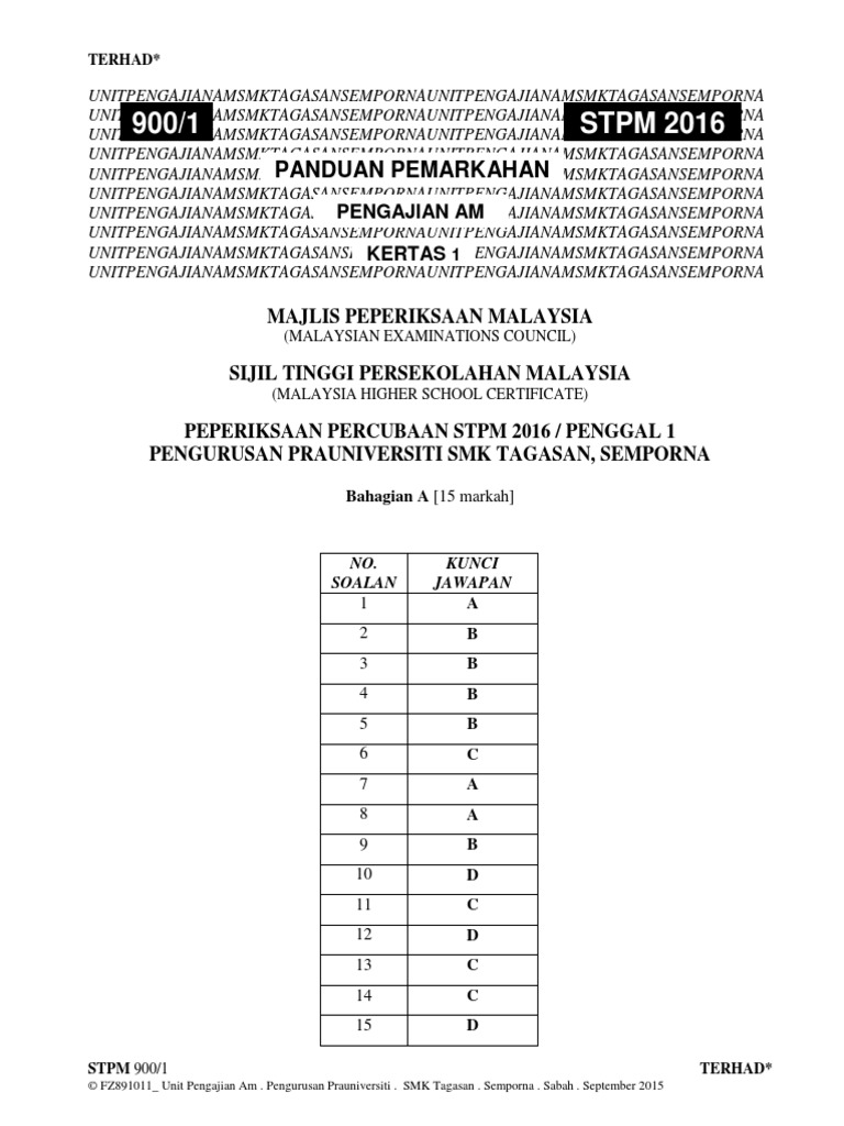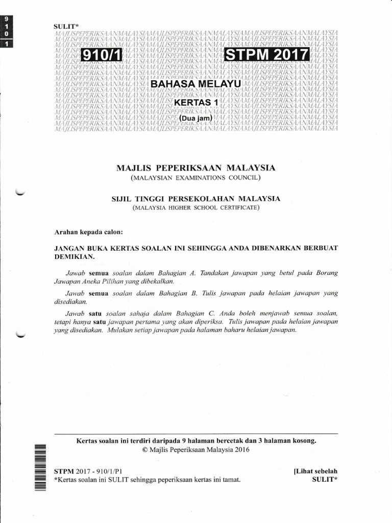 Skema Jawapan Bahasa Melayu Stpm Penggal 3 2016