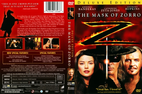 The best in the world dvd covers. The mask of zorro is a 1998 american swashbuckler film based on the character of the masked vigilante zorro created by johnston mcculley it was directed by martin campbell and stars antonio banderas anthony hopkins catherine zeta jones and stuart wilson the film features the original zorro don diego de la vega hopkins escaping from prison to find his long lost daughter zeta jones and. 3232 x 2151 px. The mask of zorro is a cinematic blast on blu ray a film that likes itself and has every good reason to.